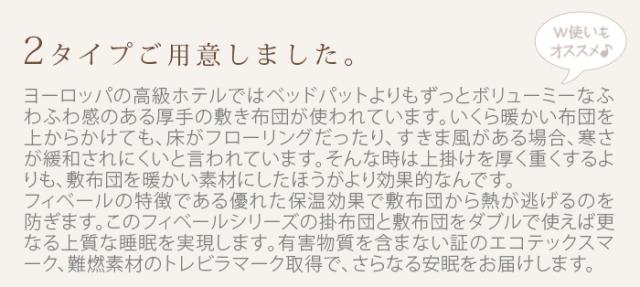 15万個以上の販売実績を誇る、ダンフィルブランドのフィベール枕と同シリーズの掛布団、敷布団です。フィベール枕は高級ホテルが使っている枕としても有名でデンマーク国立病院リグスホスピタレットや、世界的に有名なヒルトングループ・スキャンディックホテルなどの高級ホテル、または豪華客船にも採用されるほどのハイクオリティーを誇りながらも低価格を実現!枕だけでなく、掛布団、敷布団もダンフィルで揃えれば、リッチな寝ごこちを全身で実感できてしまいます!世界中のセレブと同じ極上の寝ごこちがここにあります。