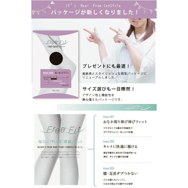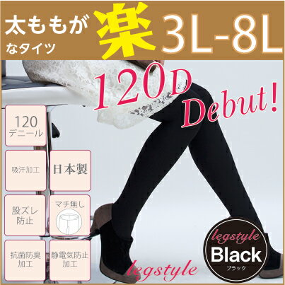 タイツ レディース 3L〜8L 厚手 120デニール メール便1足までゆったり タイツ 日本製 大きいサイズ ゆったりタイツ プラスサイズ ぽっちゃり 4L 5L 7L FreeFit フリーフィット LegStyle