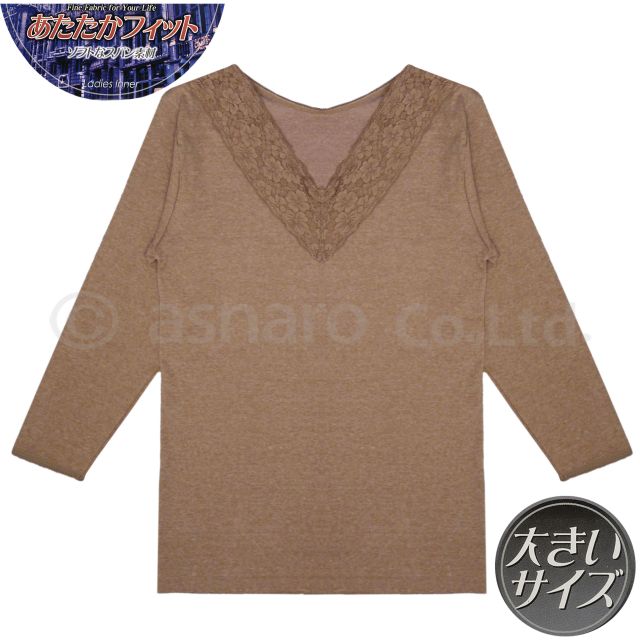 長袖シャツ レディース インナー 大きいサイズLブラウン