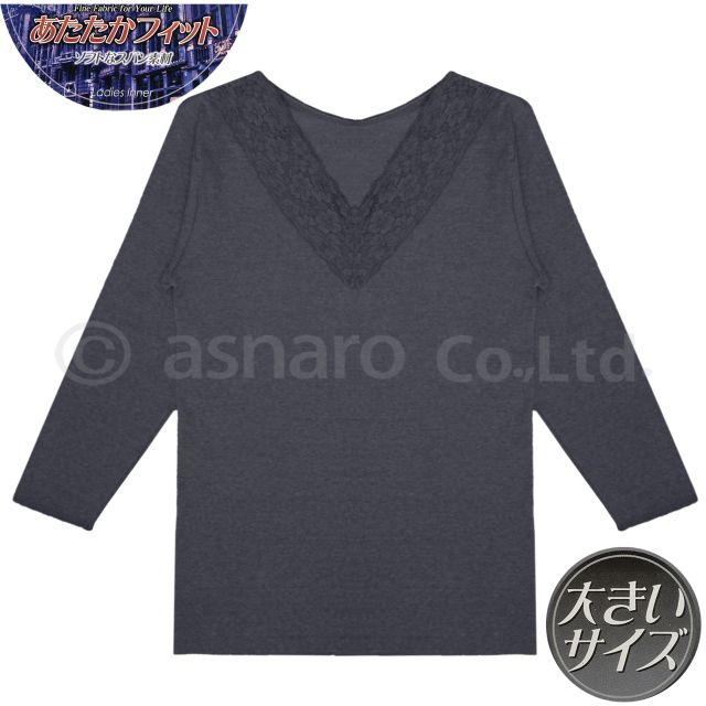 長袖シャツ 女性 婦人 インナー 大きいサイズチャコール