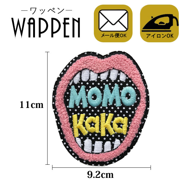 ワッペン 刺繍ワッペン アイロン接着 縦11cm×横9.2cm 唇 リップ MoMo KaKa アップリケ アイロンワッペン デコ カスタム母の日 プレゼント ギフト