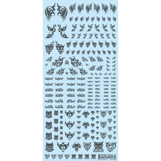 1/12フィギュアのカスタムアップ用、「ハート」をモチーフにした水転写式タトゥーデカールです。