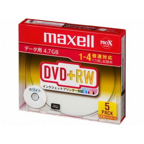 maxell (マクセル) maxell データ用 DVD+RW 4.7GB 4倍速対応 インクジェットプリンタ対応ホワイト 5枚 D+RW47PWB.S1P5SAA