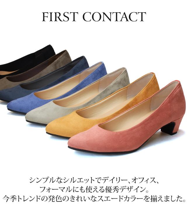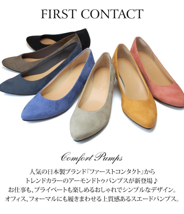 ファーストコンタクト パンプス 痛くない 歩きやすい 疲れない 太ヒール スエード 柔らかい 39522 レディース 日本製 靴
