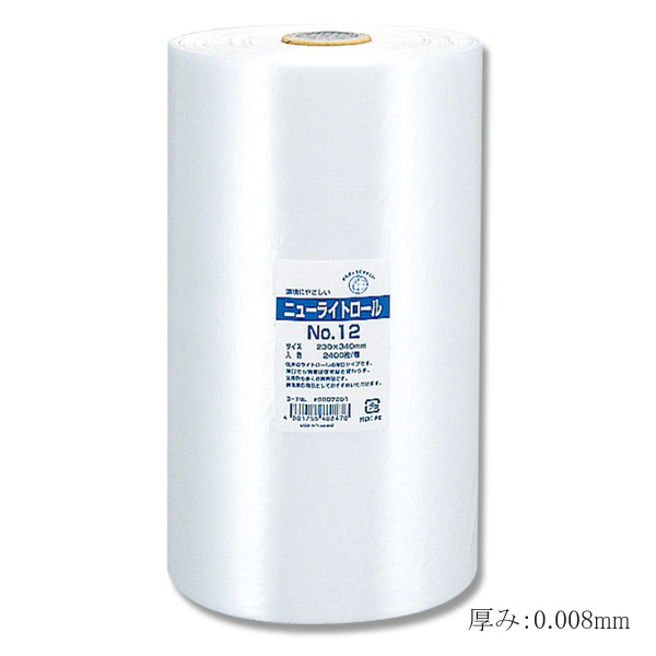 【直送/代引不可】ニューライトロール No.12 厚み0.008 ロールポリ 半透明 2400枚/本 12本