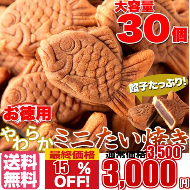 【お徳用】やわらかミニたい焼き30個(10個×3袋) タイヤキ たい焼き 送料無料/常温便