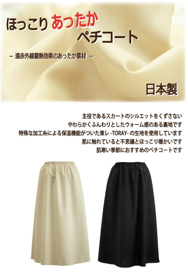 特殊加工糸による保温機能がついた寒い季節におすすめのあったかペチコート。