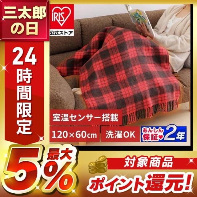 電気毛布 電気ひざ掛け 60×120cm 膝掛け ブランケット 大判 大きめ 掛け敷き 電気敷毛布 かけしき 掛け毛布 電気 季節家電 あったか 秋冬 かわいい おしゃれ 人気 チェック柄 KEBK-1206-ZR アイリスオーヤマ 送料無料 安心延長保証対象