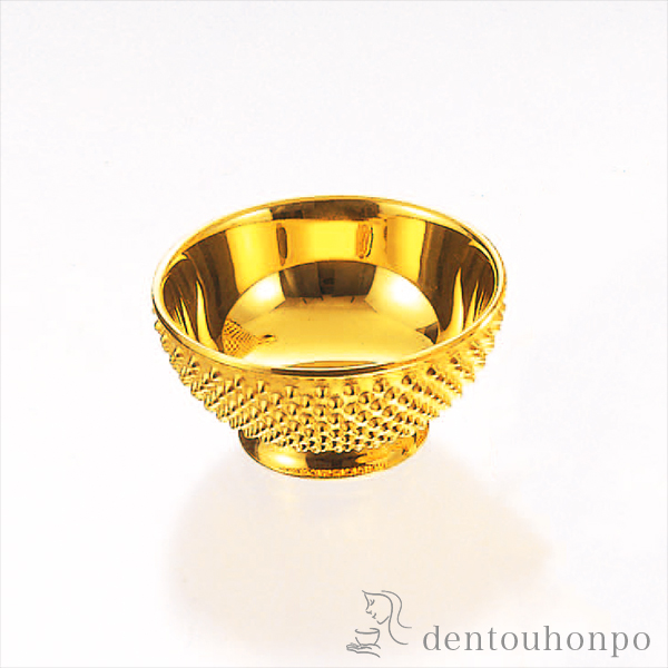 お酒を美味しく愉しむ道具の猪口。純金で細部まで丹精に作り込みました。特別な席でお使いいただくことはもちろん、気品を感じさせる上品さを併せもっています。純金の輝きが人々を魅了し、贈り物としても最高級といえる逸品です。
