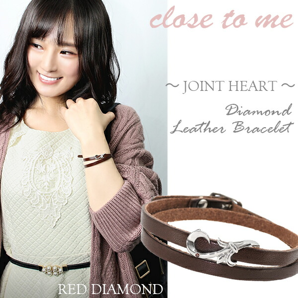 close to meブルー&レッドダイヤモンドハートレザーペアブレスレット ペア アクセサリー カップル ブレスレット 2本セット ブランド