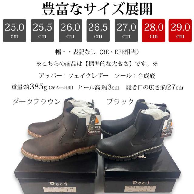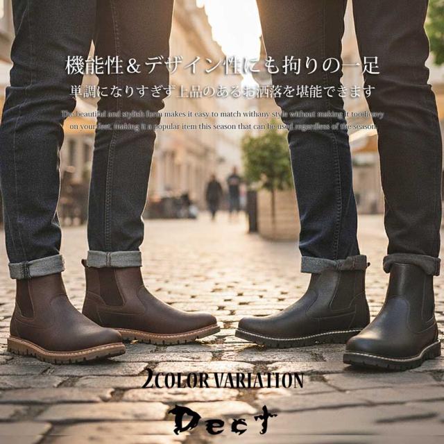 | 【商品説明】 | 製造改良し生まれ変わり新入荷 DECTブランドのサイドゴアブーツは、冬のカジュアルシーンに最適なメンズシューズです。 4cmの静水に4時間耐える防水性能を持ち、雨や雪の日でも安心して履けます。 防滑底とラバーグリップソールが滑りにくさを実現し、安全性を高めます。 おしゃれなデザインで、ビジネスシーンにも対応可能。 大きいサイズは29cmまであり、幅広い方にフィットします。 快適さと機能性を兼ね備えた一足です。 サイドゴムですので両サイドのゴムの部分より水等がしみ込む事がございます。ご使用前に撥水もしくは防水スプレーの散布をお勧めいたします。 仕様としては防水ライニングを甲被の間に巻き込んで成型しており底面(底の接地面)より4cmは内部に水が侵入しにくい防水設計です。 4cmを超えた場合は内部に水が浸入して参りますのでお気を付け下さい。 「ご注意」 この商品の防水は静水4cmに4時間浸漬の防水性を基準としております。 雨などで長時間着用すると水が浸入する場合が有ります。 また甲上部まで水に浸かると水が浸入する場合が有ります |