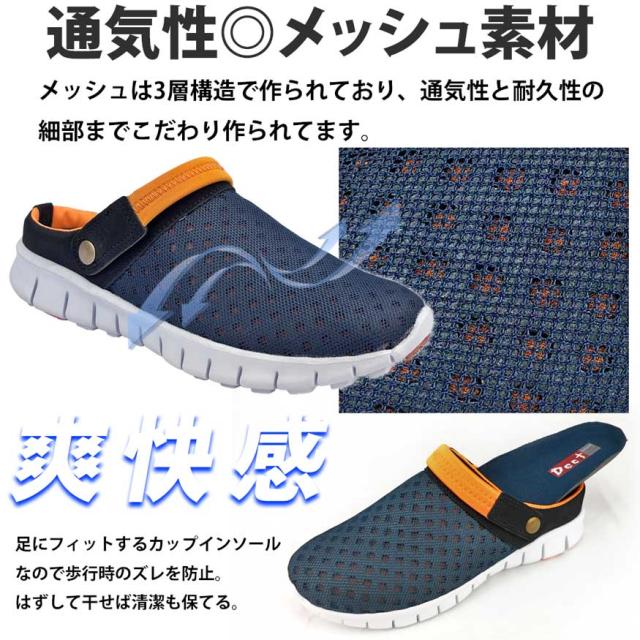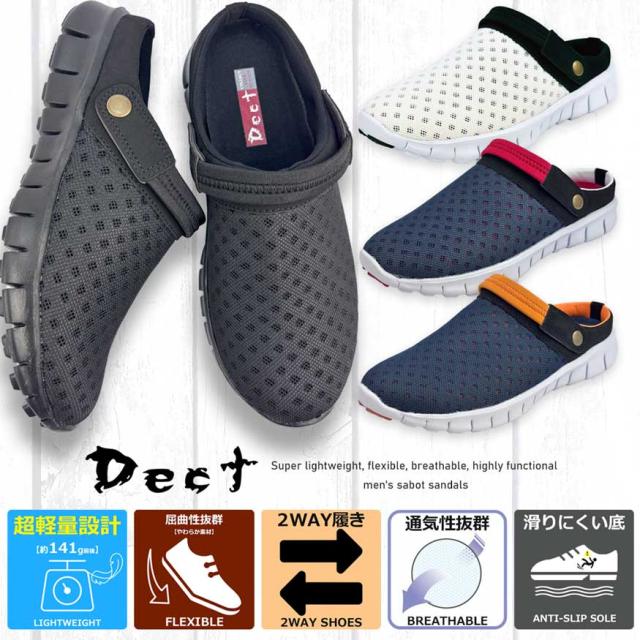メンズサンダル サンダル サボサンダル スリッポン メンズ メッシュ 通気性 屈曲性 ストラップあり かかとなし 大きいサイズ DECT ブランド