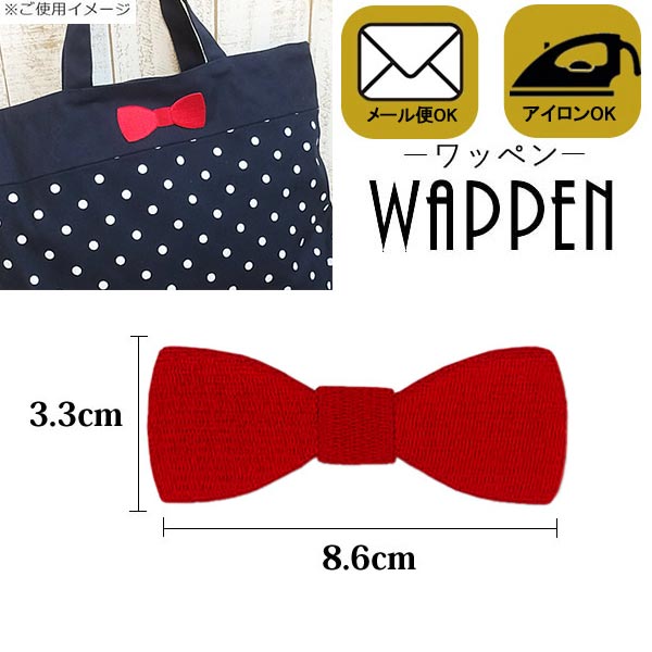 リボン ワッペン 刺繍ワッペン アイロン接着 縦3.3cm×横8.6cm レッド 赤 りぼん 蝶ネクタイ アップリケ 手芸 母の日 プレゼント ギフト