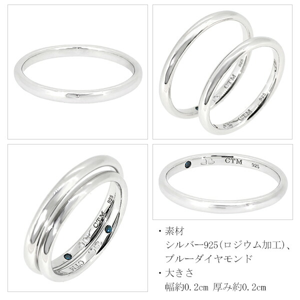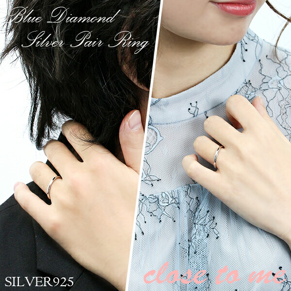 刻印無料 close to me ブルーダイヤモンド プレーン シルバー ペアリング 7〜21号 ペア リング ペア指輪 指輪 ペアアクセサリー シルバー ペアリング 2本セット シルバー925 ブランド