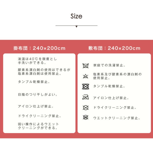 ※布団のサイズ表記は生地寸であり、仕上がり寸ではございません。予めご了承ください。