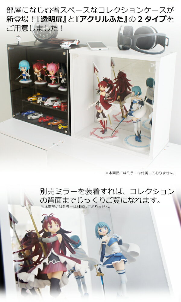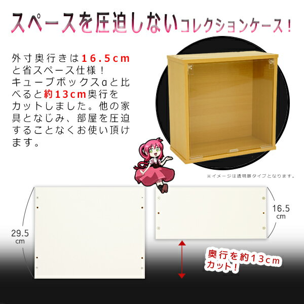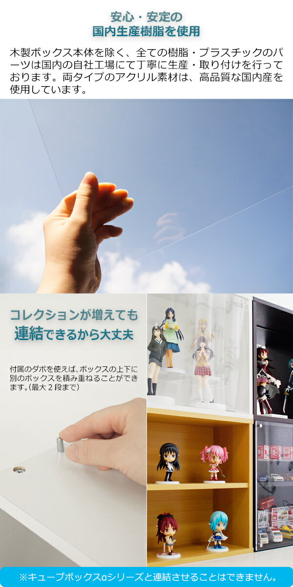 奥行き16.5cm 薄型 コレクションケース キューブボックスαハーフ 透明扉orアクリルふた 木製 フィギュアケース アクリル ひな壇 ディスプレイケース 安い 卓上 ロータイプ ミニカー トミカ 背面ミラー 別売り フィギアケース