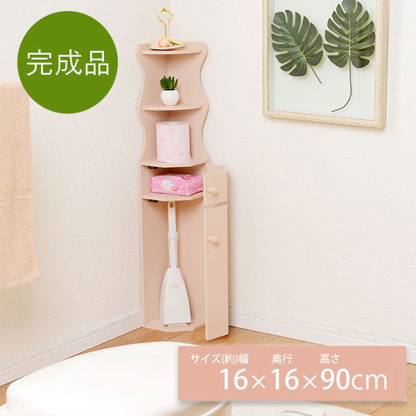 トイレの隅にちょこっと収納 コーナートイレラック 【送料無料】 木製 トイレ収納棚 トイレ コーナーラック 棚 ピンク かわいい 完成品 省スペース 激安 ホワイト 三角 小さい コンパクト おしゃれ