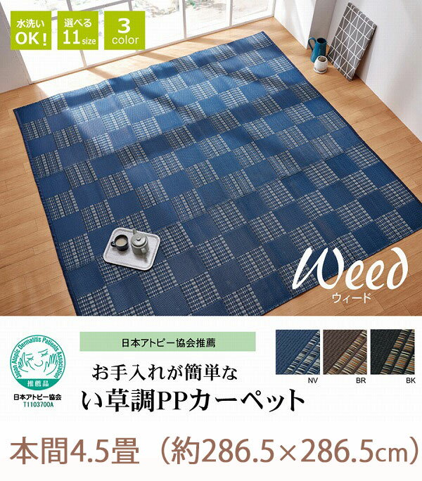 日本アトピー協会推薦 い草調 PPカーペット 本間 4.5畳 (286.5×286.5cm)【送料無料】 夏用カーペット センターラグ 正方形 プラスチック おしゃれ 洗える 夏用 ラグマット 安い 激安 日本製 格安 国産 いぐさ