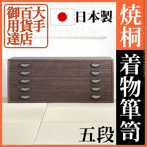大手百貨店御用達 焼桐着物箪笥 5段 送料無料 桐たんす 着物用 日本製 高級 桐タンス 着物 収納 総桐たんす 和たんす 和タンス 和箪笥 着物用 焼桐タンス