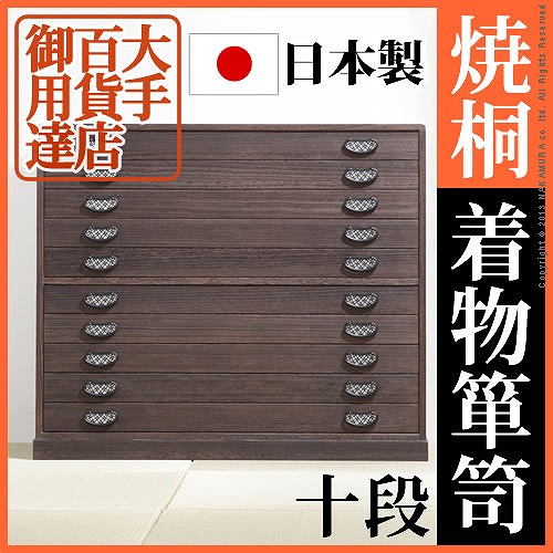 大手百貨店御用達 焼桐着物箪笥 10段 送料無料 桐たんす 着物用 タンス 日本製 焼桐 総桐たんす 着物 高級 引き出し 和風 安い 激安 箪笥