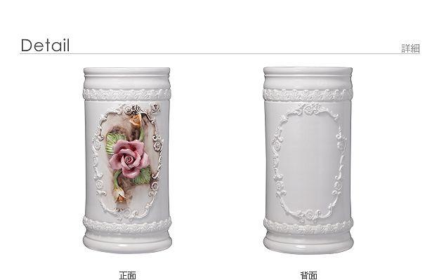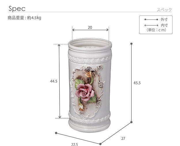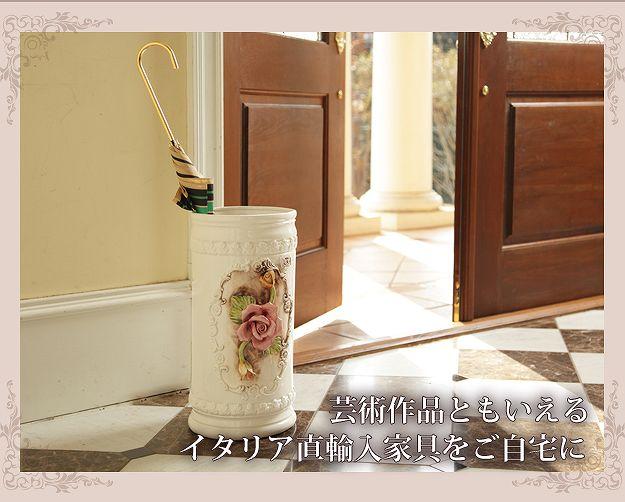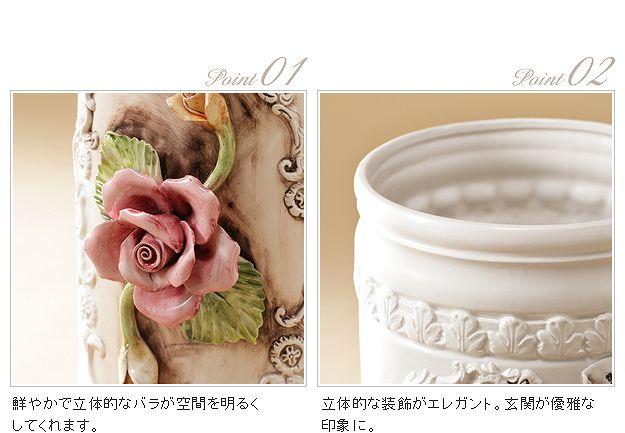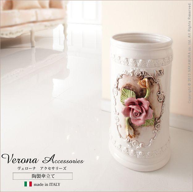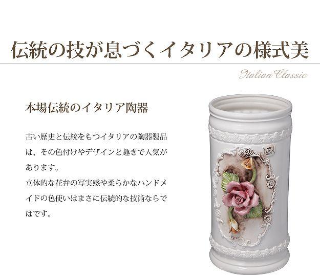 伝統のイタリア陶器を玄関に ヴェローナ 傘立て 送料無料 陶器 ホワイト 白 陶製 傘たて アンティーク おしゃれ イタリア製 薔薇柄 花柄 バラ 洋式 洋風
