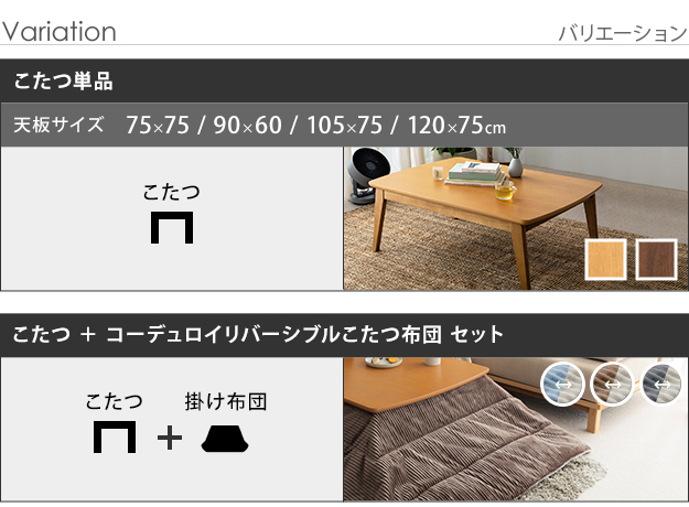 2種類の木目から選べる 北欧デザイン スクエアこたつ 長方形 120x75cm 単品 送料無料 おしゃれ こたつ テーブル 120 ウォールナット オーク 天然木 安い 激安 格安 北欧 こたつ本体のみ