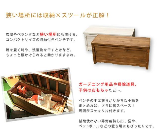 玄関やベランダなど狭い場所にも置ける、コンパクトサイズの収納付きベンチです。