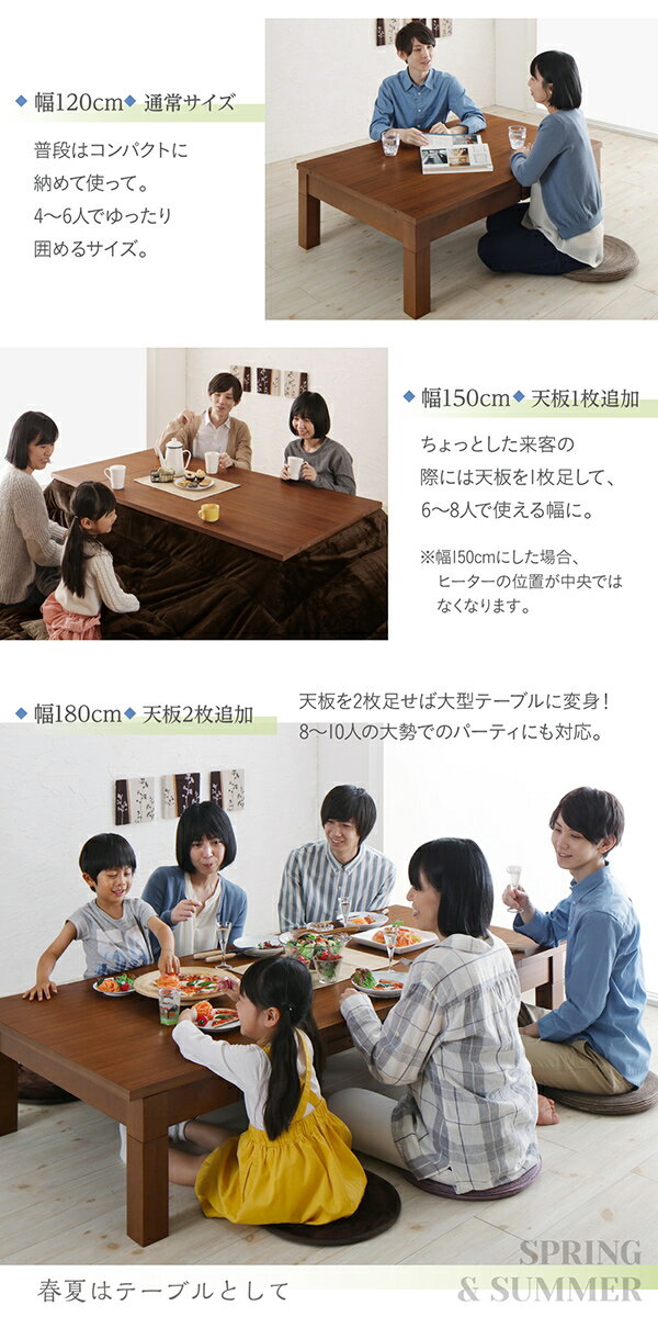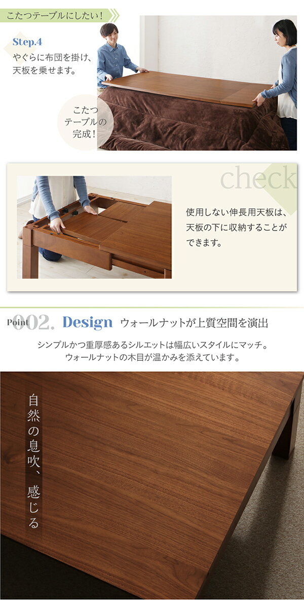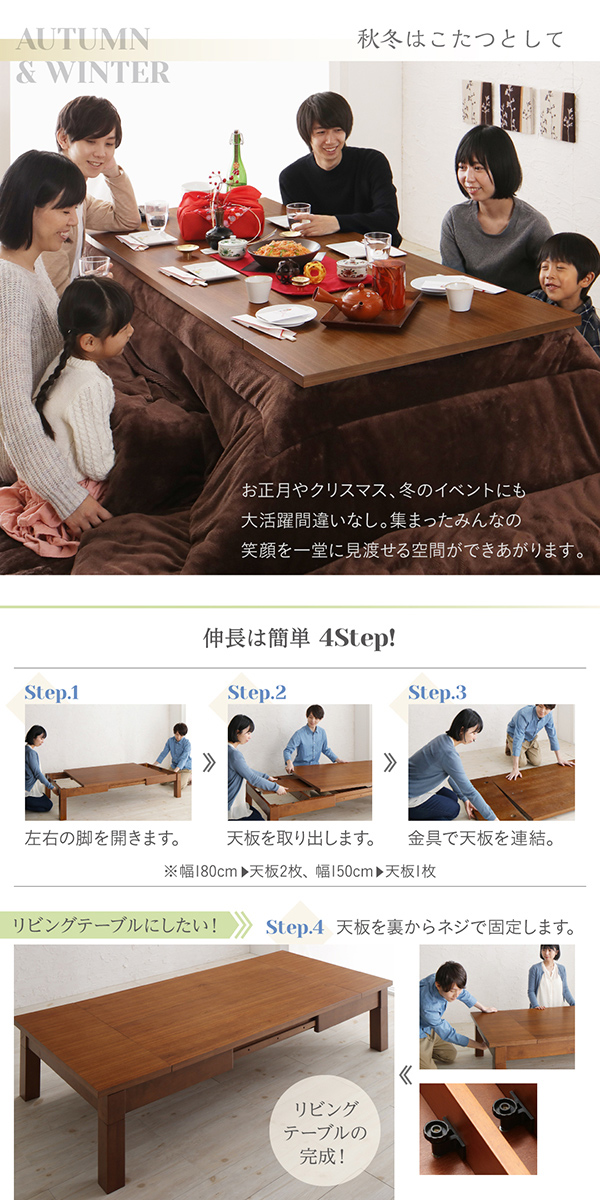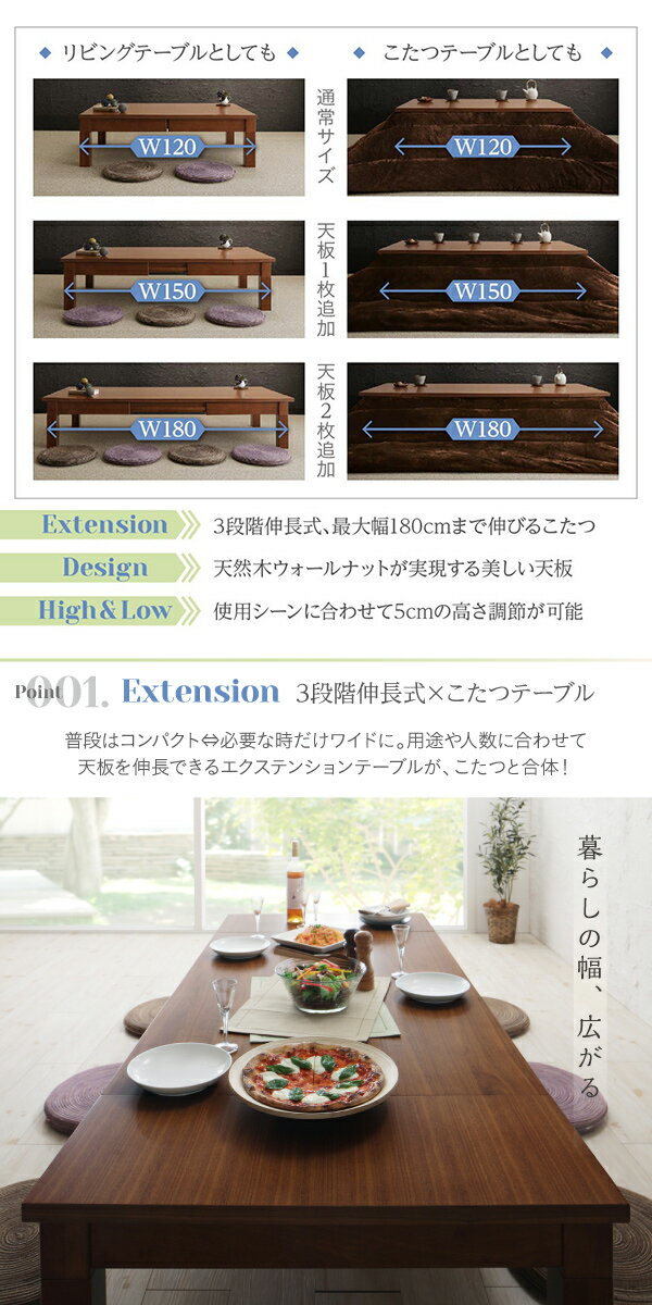 120→180まで広がるこたつ登場 伸縮 こたつテーブル 単品 送料無料 伸縮ローテーブル 長方形 伸縮テーブル 伸長式 大きいこたつ 6人 リビングこたつ ウォールナット おしゃれ