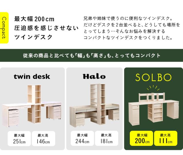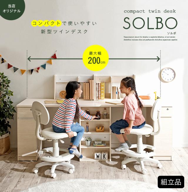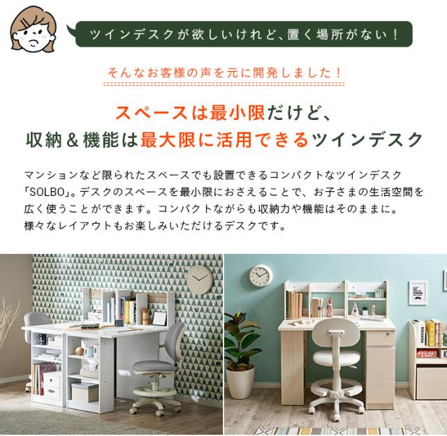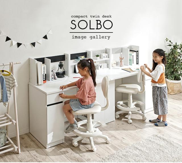 コンパクト ツインデスク SOLBO(ソルボ) 4色対応 学習机 学習デスク シンプル リビング 大人 子供 兄弟 子供部屋 北欧 おしゃれ ホワイト ナチュラル ブラウン