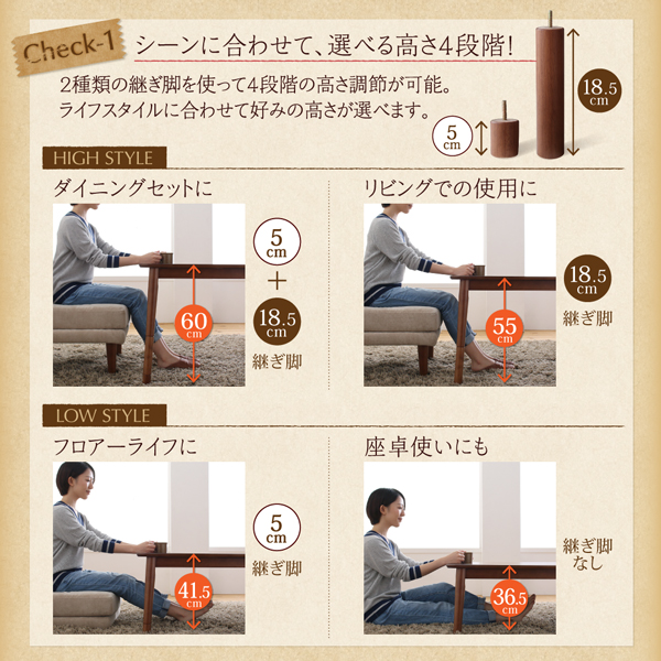 ダイニングこたつ/こたつダイニング/こたつテーブル/コタツテーブル/ダイニングテーブル/高さ調節/高さ調整/継ぎ脚付き
