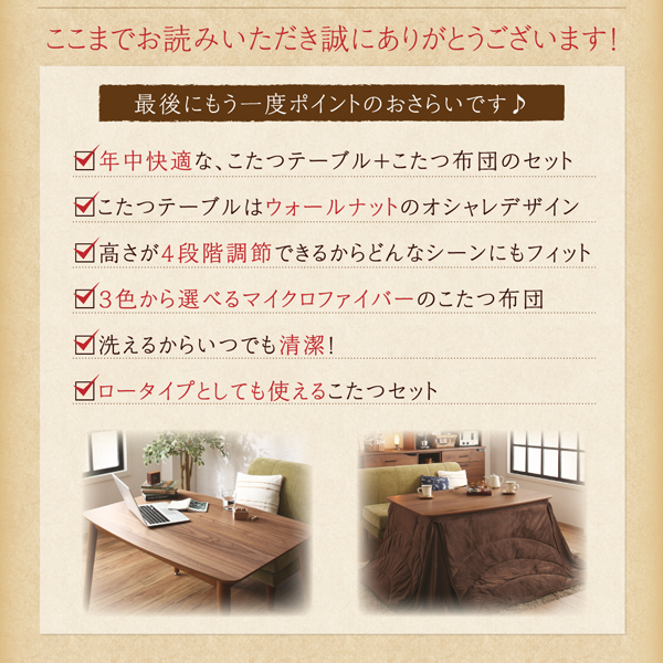 高さ調節ができるダイニングこたつ・こたつ布団シリーズ 【CHECA】チェッカ ダイニングこたつテーブル単品 W120(80×120cm) ウォールナット