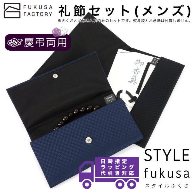 【宅配便】ふくさ styleFUKUSA 日本製 礼節セット 市松柄 チェック柄 お念珠入れ 念珠袋 慶弔両用 金封袱紗 帛紗 メンズ 男性用 ギフト
