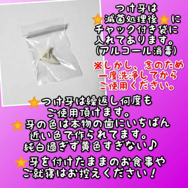 ※付け牙を装着したままお食事やご就寝は安全面上お控え下さい。