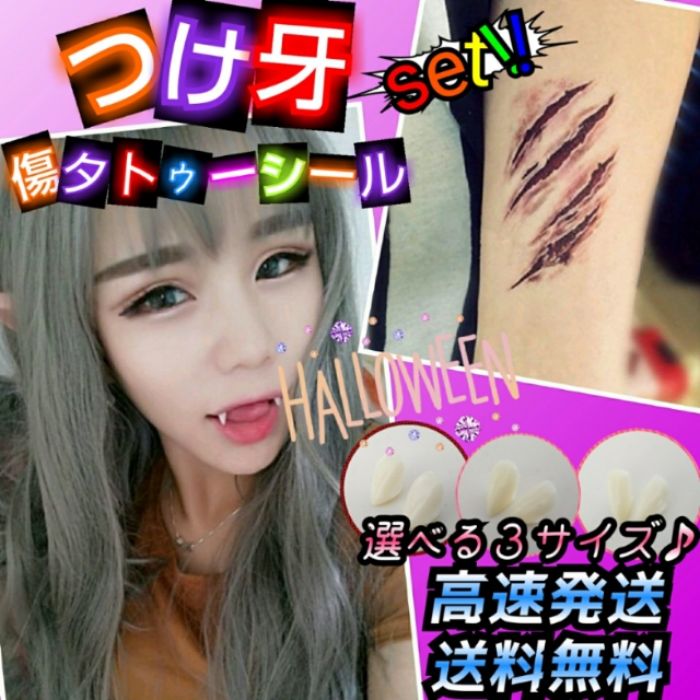 ハロウィン コスプレ ライトコスプレ つけ牙 デビル 魔女 付け牙 つけキバ つけきば 付牙 つけ八重歯 傷メイク タトゥーシール セット かわいい おしゃれ ドラキュラ 小悪魔 バンパイア コスチューム 子供 大人 仮装 ホラー ホラータトゥー送料無料