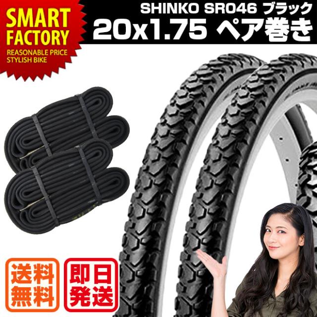 自転車 タイヤ 20インチ チューブ セット ペア 20x1.75 HE ブラック SR046 SHINKO シンコー お