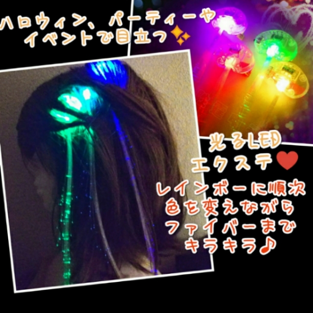 ハロウィン コスプレ ライトコスプレ エクステ ワンタッチ カラー パッチン 3個入り デビル 魔女 光る イルミネーション グラデーション LED 仮装 飾り ヘアアクセサリー ウィッグ 子供 キッズ 女の子 大人 インスタ映え カット可能 ハロウィーン 送料無料