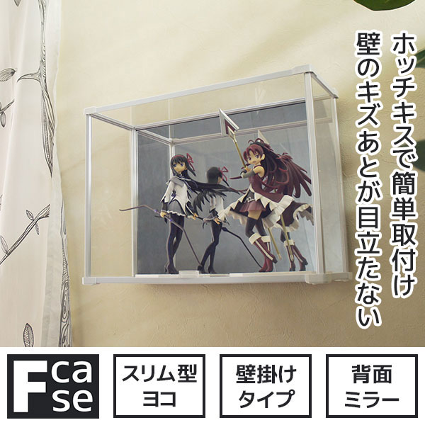 賃貸だって気にしない 壁掛け コレクションケース Fケース スリム・ヨコ型 背面ミラー送料無料 壁 傷つけない フック 棚 壁掛けタイプ アクリルケース フィギュアケース 安い おしゃれ アクリル 石膏ボード ホッチキス 壁美人