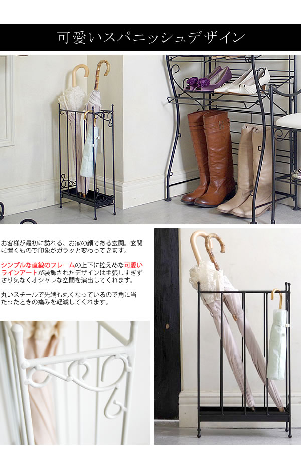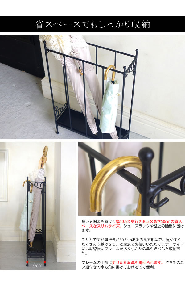 ラインアートが可愛い アイアン アンブレラスタンド アンティーク 傘たて おしゃれ スチール フレーム 傘立て かわいい スリム アイアン アンティーク調 姫系 激安 安い 省スペース