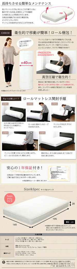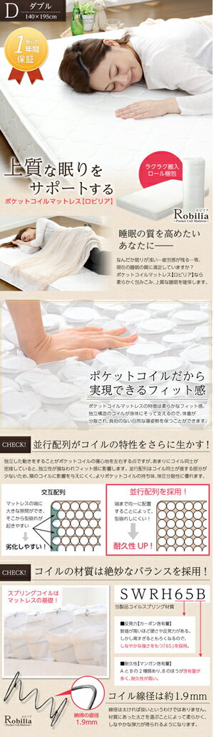 ポケットコイルスプリングマットレス【-Robilia-ロビリア】(ダブル用)※ロール梱包でラクラク搬入可能!※