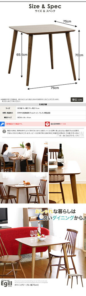 2人にちょうどいいサイズ ダイニングテーブル 75×75 正方形 【送料無料】 単品 幅75cm ウォールナット 小さい おしゃれ コンパクト 2人用