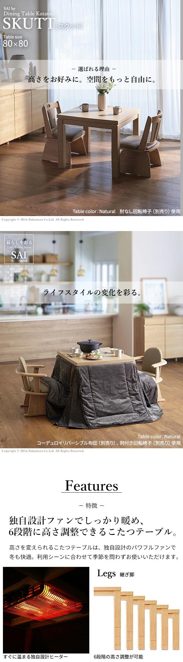 【キーワード】 ダイニングこたつテーブル ハイタイプこたつテーブル おしゃれ 安い 高足こたつ 高脚こたつ おすすめ 高齢者 ダイニングテーブル こたつ付き 激安 格安 1人用 人気ランキング 正方形 デスク 大きめ 80×80 80角 コンパクト 小さめ 小さい 二人用 継ぎ脚 スクット 6段階 高さ調節