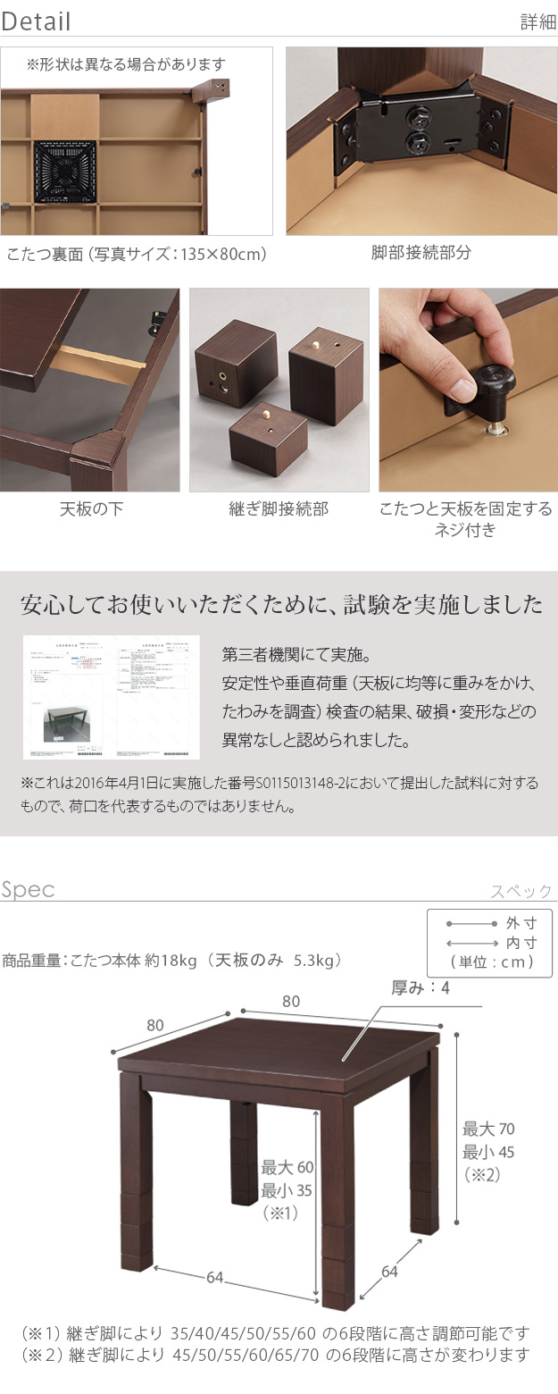 こたつ単品 >90x60 >80x80 >105x80 >135x80 >150x90 |