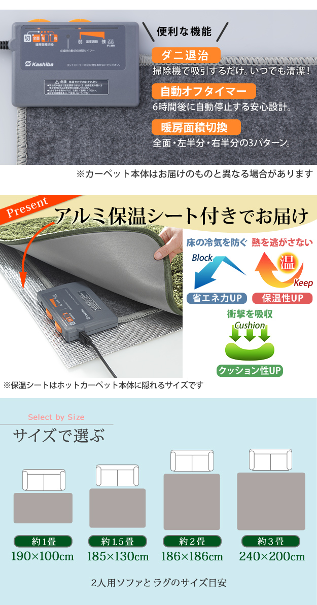 ラグマット+ホットカーペットセット >1畳(190x100) >1.5畳(185x130) >2畳(186x186) >3畳(240x200) |