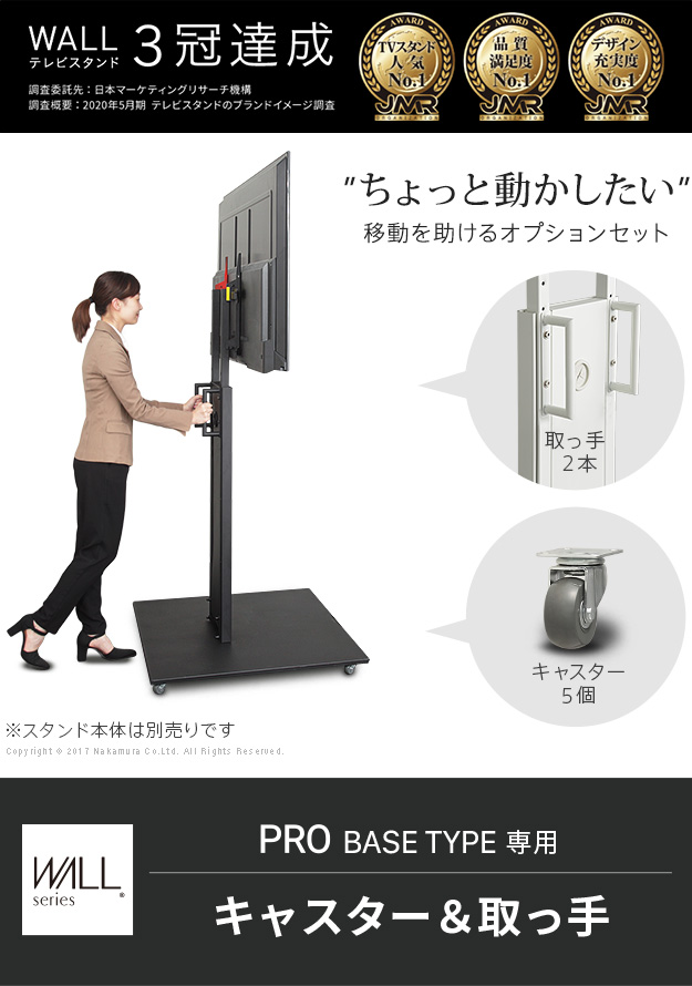 オプション品 WALL PRO ウォールプロ ベースタイプ専用 キャスター&取っ手セット 送料無料 壁掛けテレビ 取り付け 金具 部品 壁寄せテレビスタンド ディスプレイスタンド 大型 テレビ