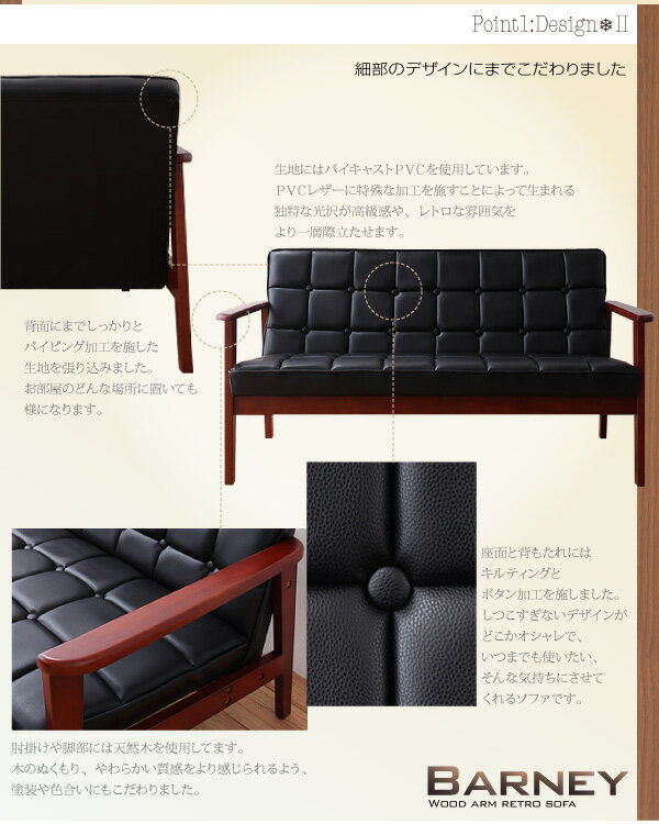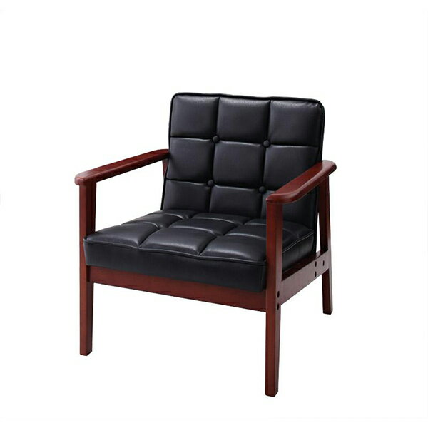 独特な光沢で高級感を演出 肘付き レトロソファー PVCレザー 1人掛け 送料無料 一人用ソファー 木肘ソファー 合皮 革 レザー 合成皮革 一人掛け アンティーク 安い 激安 カフェ風 木肘付き ブラック 黒