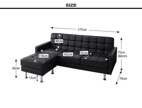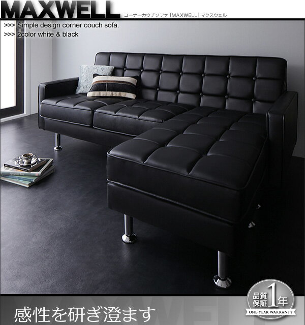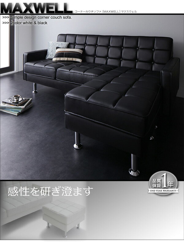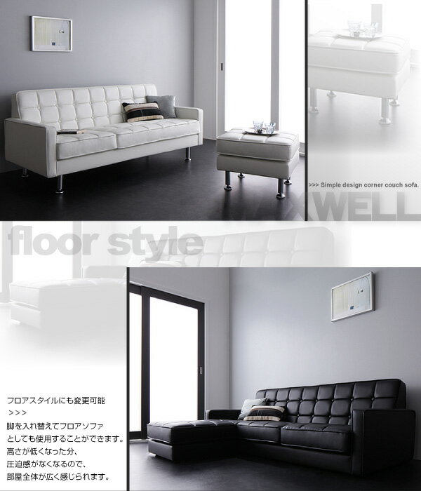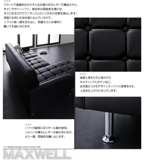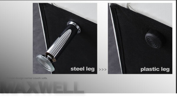 スチール脚とレザーのクールな組み合わせ コーナーソファー オットマン付き 送料無料 3人掛け 高い コーナーカウチソファー レザー 激安 合皮 合成皮革 カウチソファー L型 L字 安い ブラック ホワイト 白 黒 おしゃれ