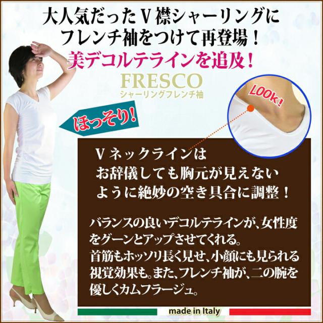 半袖 スキーネペッレ FRESCO シャーリング フレンチ袖 イタリア製 二の腕スッキリ レイヤードイ