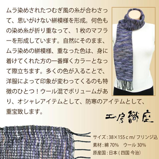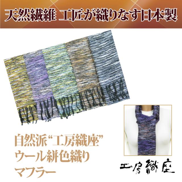 自然派“工房織座”のウール かすり 色織りマフラー プレゼント