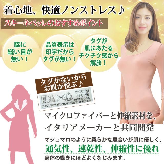 訳あり・パッド無 長袖 スキーネペッレ TASCA ブラ機能付7分袖インナー イタリア製 ラウンドネ