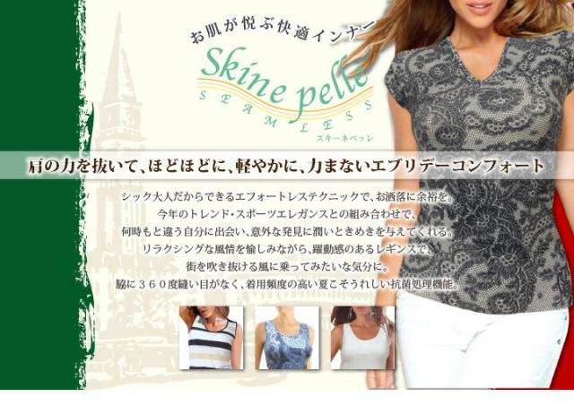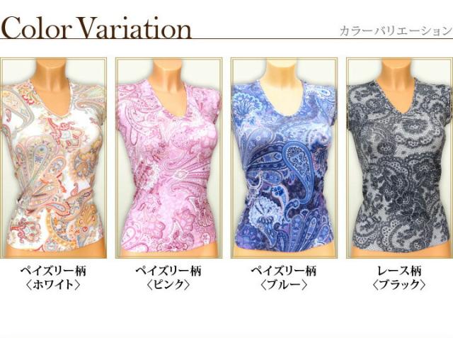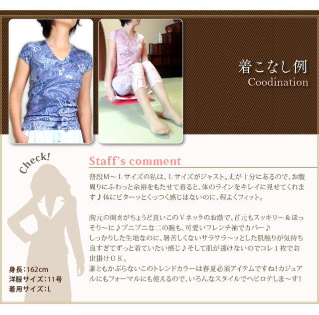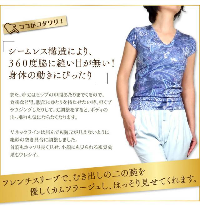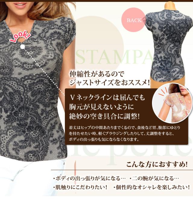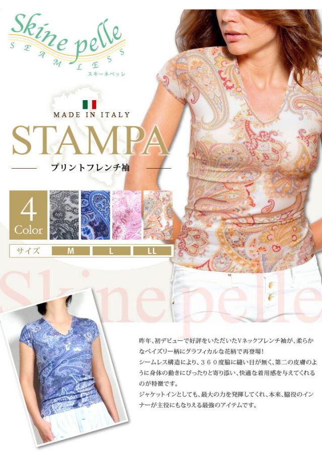 半袖 インナー レディース STAMPA プリント柄 フレンチ袖 スキーネペッレ イタリア製 二の腕スッキリ レイヤードインナ 伸縮素材 Vネック